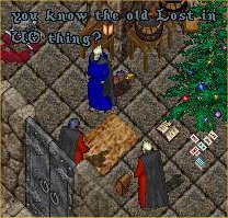 Just as the group prepared to reinact classic UO history, a new twink shows up to try and ruin the perceived organized event. Twinks can't stand to see organized events. :)