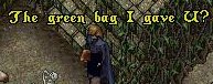 KinWani hands Belan a bag, 'Tis DOC Heathen Scum's missing loot! KinWani had apparently been holding it for him until he could find some way to become living again. How nice of her to just hand it over!