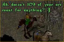 Jerry Springer was quite hard at work mining ore along side his two packies, but he seemed to be having a hard time placing the ore in the care of his companions, instead opting to use the floor as his container. Maybe he intends for Belan to help herself? She does, helping herself to over 100 ore.